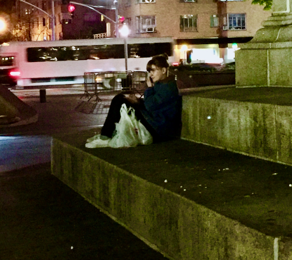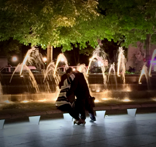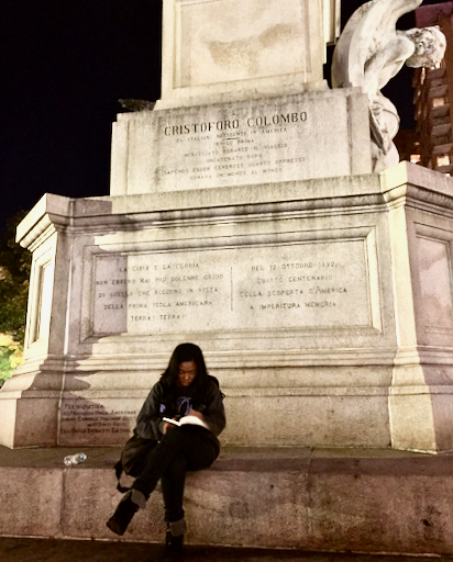 Scenes from Columbus Circle — a great place for New Yorkers to hangout, enjoy the fountains, do a news segment or even propose. (c) Diana Belchase