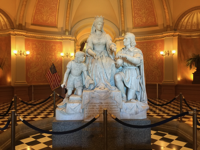 Columbus was now prepared to seek royal patronage. Any candidate for patronage has two immediate pre-requisites, an impressive resume, and some important contacts. In the course, of his travels Columbus had developed both. While doing this he was also living his personal life. He was by now a widower. By 1485 his wife Felipa Perestrello e Moniz had passed away leaving him with his son Diego, who bore his father’s Spanish name, Colon. All accounts of Columbus describe him as a rather tall and handsome man. He had a relationship with a Spanish lady of some minor noble rank, Donna Beatriz de Peraza. For whatever reason, they never married. He met a second Beatriz in Cordoba. They had a child together, Ferdinand. This Beatriz was a peasant’s daughter. There is no record of any marriage between them. The Church would have sanctioned a union between the two, but Spanish social mores would have presented obstacles since Columbus was of a higher class. In any case, Columbus took the necessary steps to legitimize Ferdinand’s birth, a common practice of the time. He always treated Ferdinand as a member of the family and Ferdinand was his father’s first biographer. In any case, Columbus and the second Beatriz remained a couple for life.